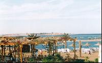 Вид с балкона на территорию отеля: бассейн, жилые корпуса, беседку аниматоров и административный корпус в центре, где находится ресепшн.